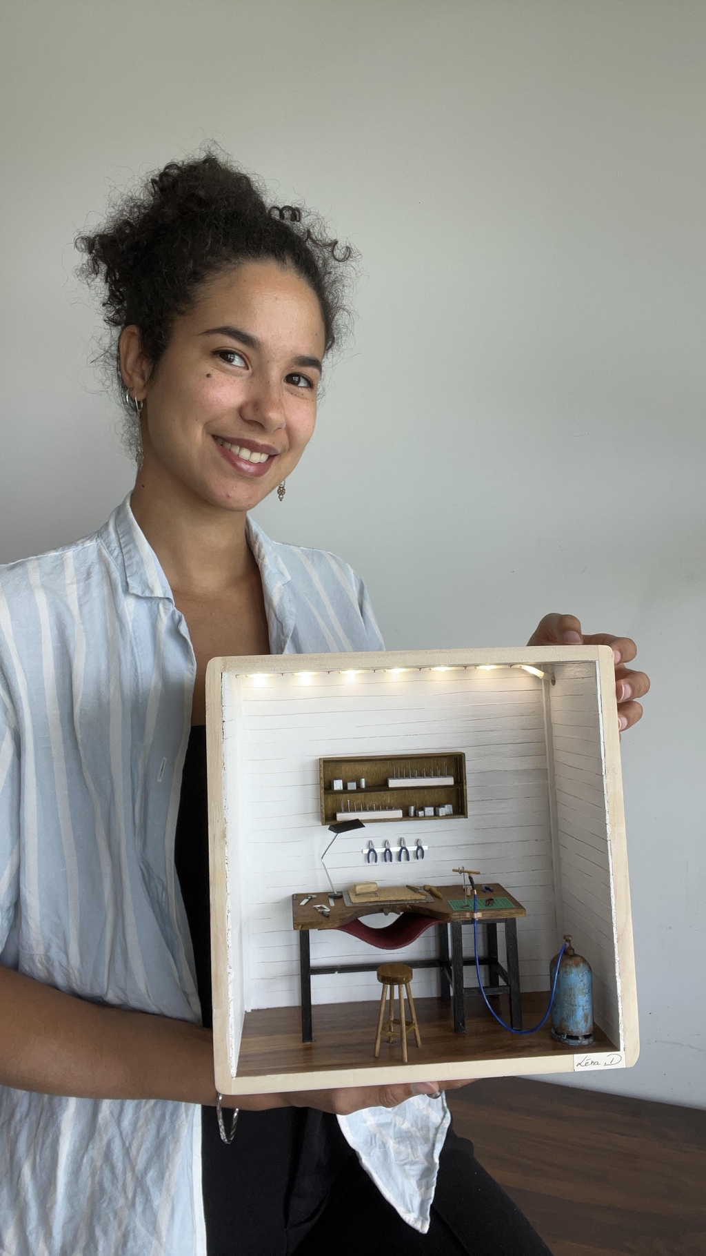 Originaire de l'Ile de La Réunion, je suis venue à Lyon pour étudier la danse contemporaine. C'est lors d'une soirée de Noël, en 2019 que je crée ma première miniature en autodidacte. Etant inspirée par l'architecture, l'univers du stop motion et de l'animation, j'ai été poussée par cette envie de réaliser concrètement ce que j'imaginais. C'est pendant le confinement en 2020 que j'ai eu le temps approfondir et développer ma technique.